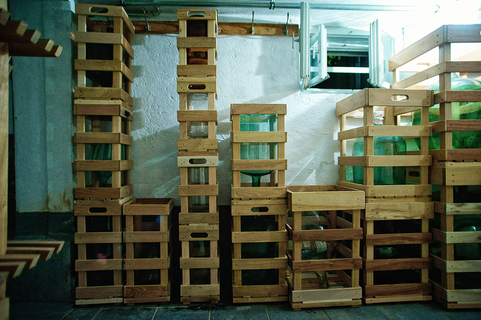 Je nach Sorte lagert der Brand in großen Glasballons oder in Holzfässern, welche speziell dafür ausgesucht werden. In Kooperation mit dem Fassbinder werden die einzelnen Fässer extra für den Stadtbrenner angefertigt.
